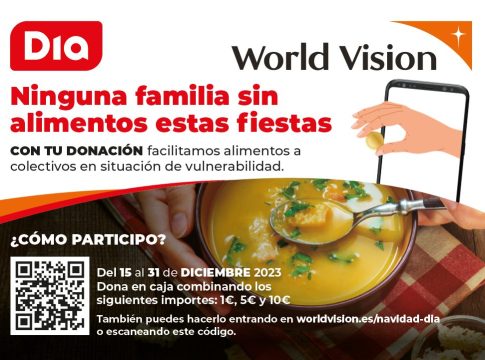 Dia sigue reforzando su compromiso con acercar una alimentación de gran calidad a todas las personas, independientemente de dónde vivan o su presupuesto, especialmente durante las fiestas navideñas. En línea con esta misión, un año más la compañía se suma a la campaña ‘Ninguna familia sin alimentos’ de World Vision, con una recaudación de fondos destinados a proporcionar un menú completo y saludable a familias en situación de vulnerabilidad en esta época del año, a través de la amplia red de comedores sociales asociados a la organización.