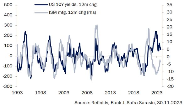 Gráfico 1: los rendimientos han superado los niveles previstos por el ISM en 2023