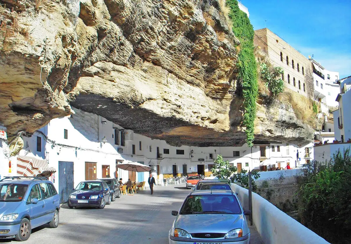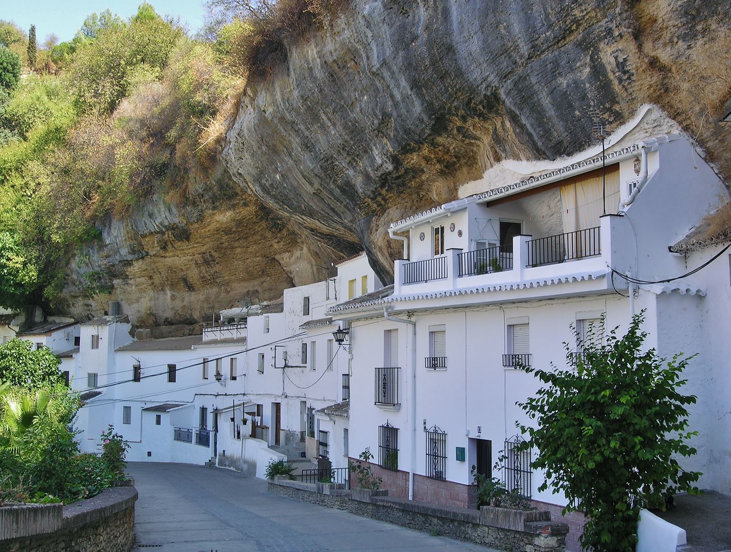La Calle Cuevas del Sol y la Calle Cuevas de la Sombra constituyen los ejes más emblemáticos de Setenil. En ellas, las fachadas de las viviendas se tiñen de blanco, en contraste con la aspereza de la piedra, y las flores añaden color y vida a este paisaje. Los balcones y ventanas que se abren entre rocas son particularmente fotogénicos y han convertido a Setenil en uno de los pueblos más retratados por viajeros de todo el mundo.