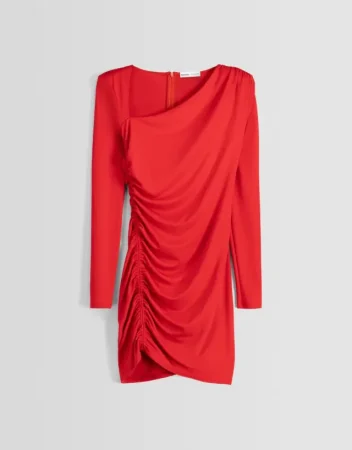 Bershka presenta un vestido mini que desafía lo convencional. Con mangas de hombros destacados y un frunce lateral, este vestido aporta un toque de originalidad a la noche de Nochevieja. El diseño ajustado realza la figura mientras que las hombreras crean un efecto estructurado y moderno. Ideal para aquellas que buscan un look elegante con un toque atrevido, este vestido de Bershka asegura un deslumbrante comienzo para el nuevo año.