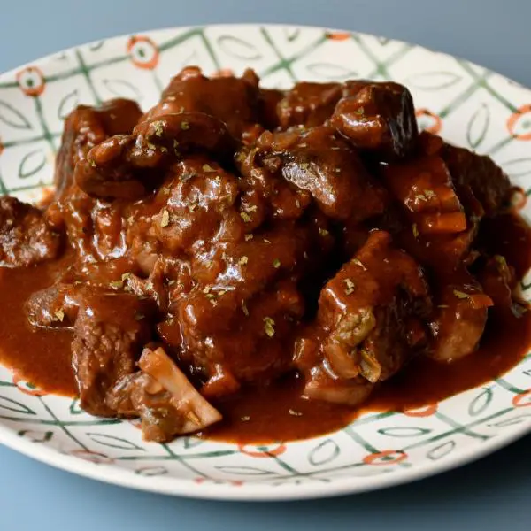 - Sirve el estofado sobre una cama de puré de patatas, pasta o arroz, asegurándote de acompañarlo con una buena porción de la suntuosa salsa.