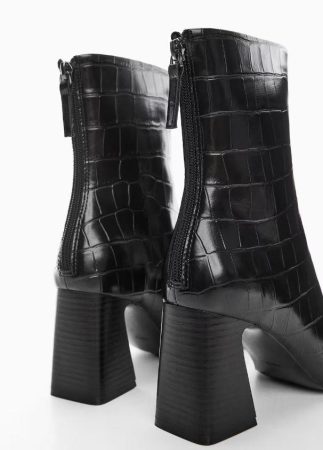 El estilo de vida y el nivel de comodidad que requieras son factores cruciales al seleccionar unos botines. Para aquellas mujeres que prefieren mantenerse en terreno plano, los botines planos son una elección obvia. Sin embargo, para aquellas que desean un poco de altura sin sacrificar la movilidad, un botín con un tacón medio, pero cómodo, es la opción ideal. En esta categoría, Mango Outlet ofrece una verdadera joya que destaca entre sus colecciones: unos botines negros de caña media, elaborados con un material que simula la lujosa textura de la piel de cocodrilo.