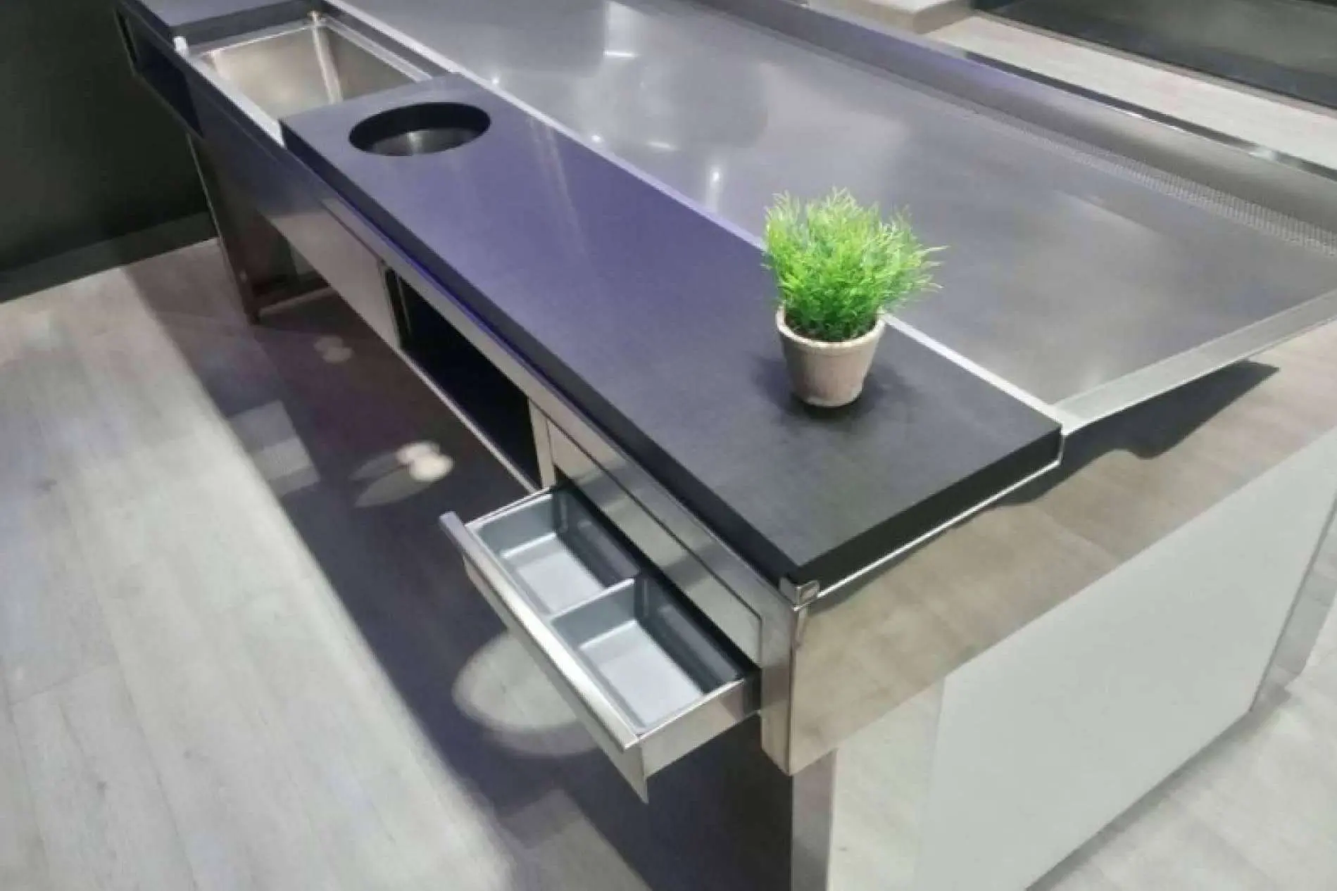 Una de las principales características de los mostradores de pescadería de Inoxamedida es su durabilidad y resistencia. Al estar hechos de acero inoxidable, son altamente resistentes a la corrosión y al desgaste. Esto los hace ideales para su uso en entornos húmedos y con alta exposición al agua, como es una pescadería. Además, el material también es muy fácil de limpiar y mantener, lo cual contribuye a tener un ambiente higiénico en el establecimiento.