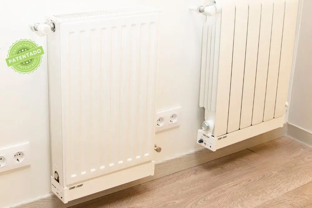 Turbofans se presenta como un sistema único de ventiladores para radiadores, diseñado para cambiar la forma en que se calientan y se enfrían los hogares. Este innovador accesorio, compatible con radiadores convencionales, se compone de ventiladores estratégicamente ubicados sobre un bastidor con un sistema de anclaje sencillo, integrándose de manera estética en la parte inferior del radiador.