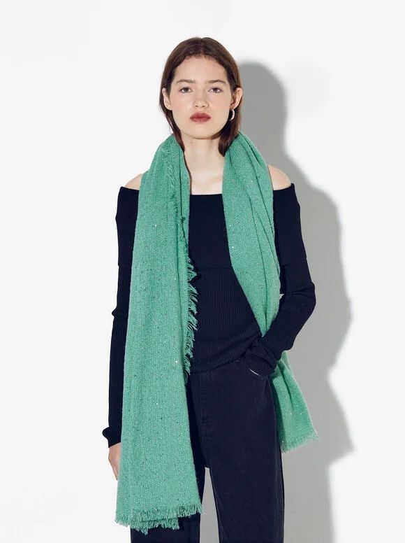 La Bufanda con Lentejuelas de Parfois, ahora a un precio irresistible de 17.99 euros. Esta exquisita pieza, confeccionada al 100% en poliéster, no solo resalta por su asequibilidad, sino también por la calidad de sus materiales que la convierten en un accesorio imprescindible para las noches de invierno.