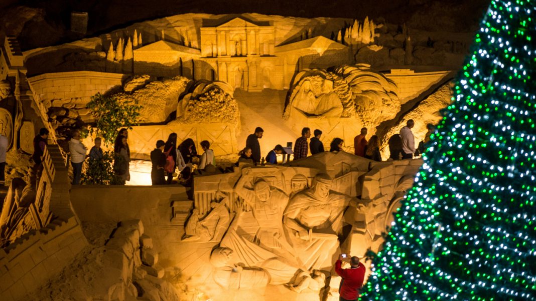 Gran Canaria ofrece una escena navideña inolvidable con su tradicional Belén de arena, celebrado durante 18 ediciones. Nueve escultores de todo el mundo trabajan durante diez días en la playa de Las Canteras, dando vida a una escenografía única que abarca 2,800 metros cuadrados y se eleva a más de cuatro metros de altura. Modelando miles de toneladas de arena y agua, crean nueve escenas navideñas, reinterpretando tradicionales estampas como el nacimiento, el ángel anunciador, los pastores, la acequia y la fuente, los Reyes Magos y las Lavanderas. Esta obra artística justifica sin duda un viaje a la isla.