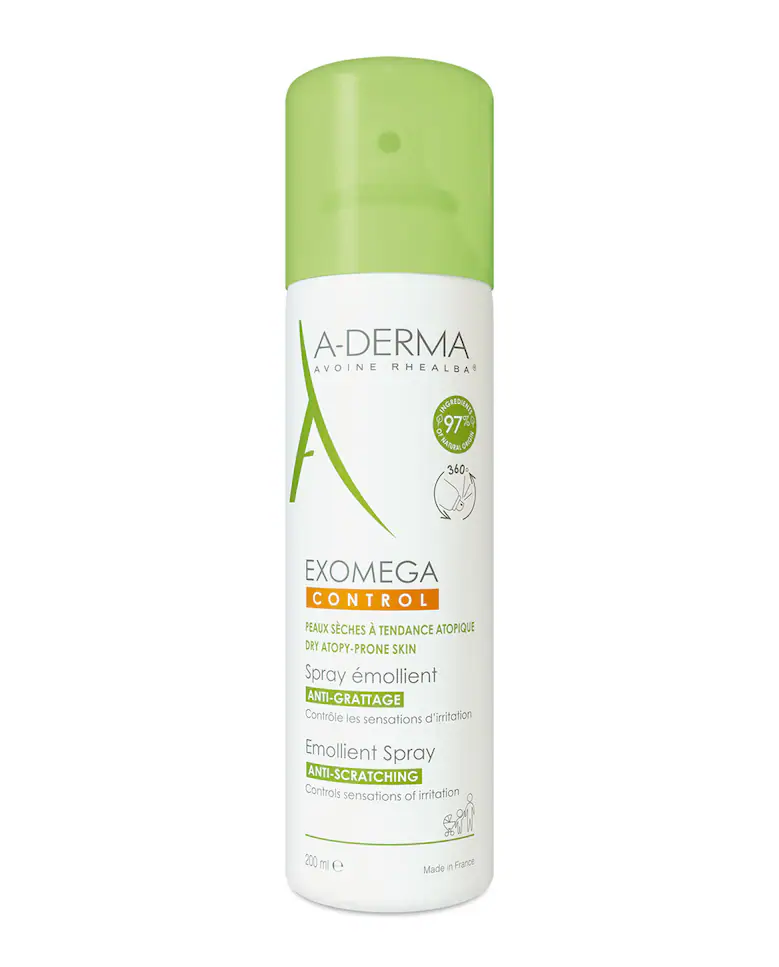 Descubre el Spray Emoliente Exomega Control de A-Derma, una solución natural anti-rascado ideal para pieles atópicas y secas con picor. Su aplicación cómoda con válvula 360º lo hace perfecto para rostro y cuerpo, desde recién nacidos hasta adultos.