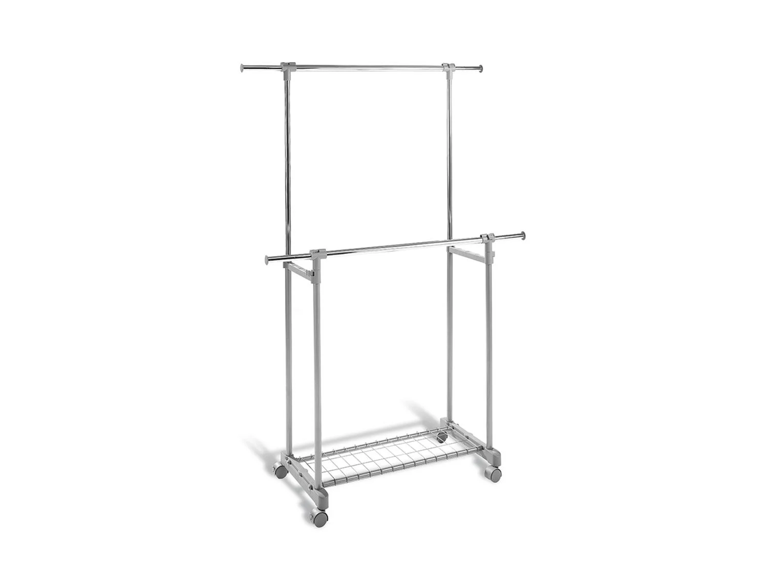 Este perchero móvil con ruedas es perfecto para cualquier rincón de tu hogar. Equipado con prácticos cierres automáticos, barras ajustables de 98-167 cm y extremos desmontables que se adaptan tanto a prendas cortas como largas. Su diseño compacto y flexible lo convierte en una solución versátil. Además, cuenta con una resistente rejilla para hasta 3 pares de zapatos y 4 ruedas suaves, dos de las cuales tienen freno.