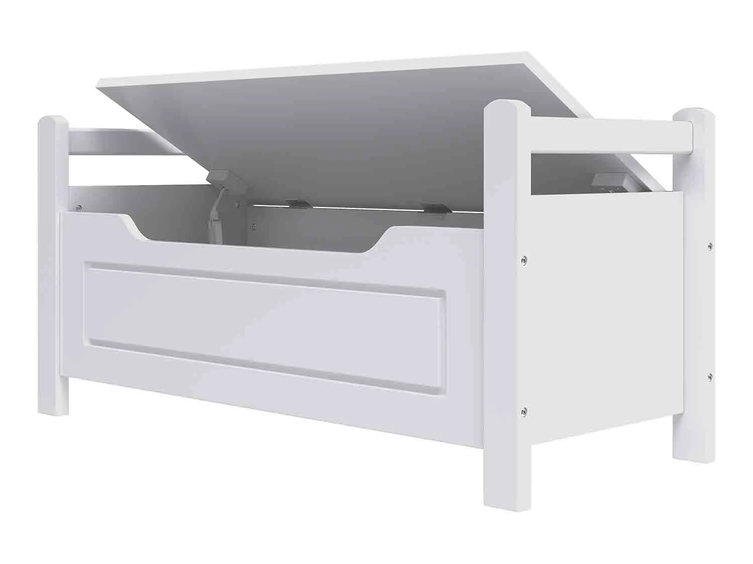 Descubre este resistente y estable banco con almacenaje, diseñado para ofrecer amplio espacio bajo el asiento. Ideal como pieza decorativa en el dormitorio o salón, este banco cuenta con una tapa abatible segura gracias a sus 2 bisagras y almohadillas antideslizantes para proteger el suelo.