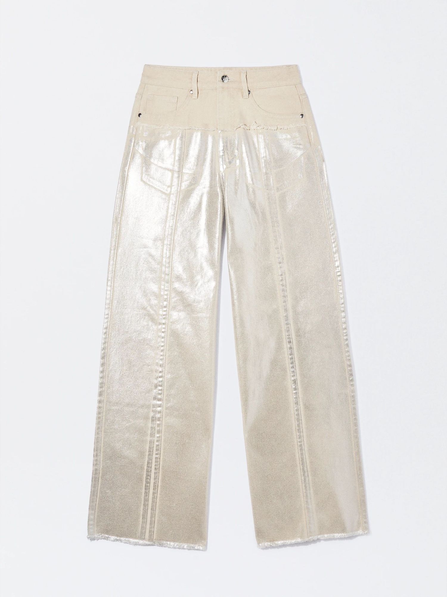 Descubre el pantalón vaquero metalizado de Parfois, una joya de moda que no querrás dejar escapar, y todo por un tentador precio de 35.99€. Este pantalón de algodón con un deslumbrante acabado metalizado presenta un corte recto y una cintura alta, proporcionando tanto estilo como comodidad. Con su cierre de cremallera y botón, este pantalón encarna la fusión perfecta entre la moda contemporánea y la practicidad.
