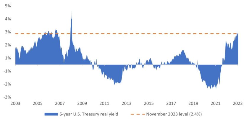 Exhibit 2: Real U.S. Treasury yield (2003 – 2023)