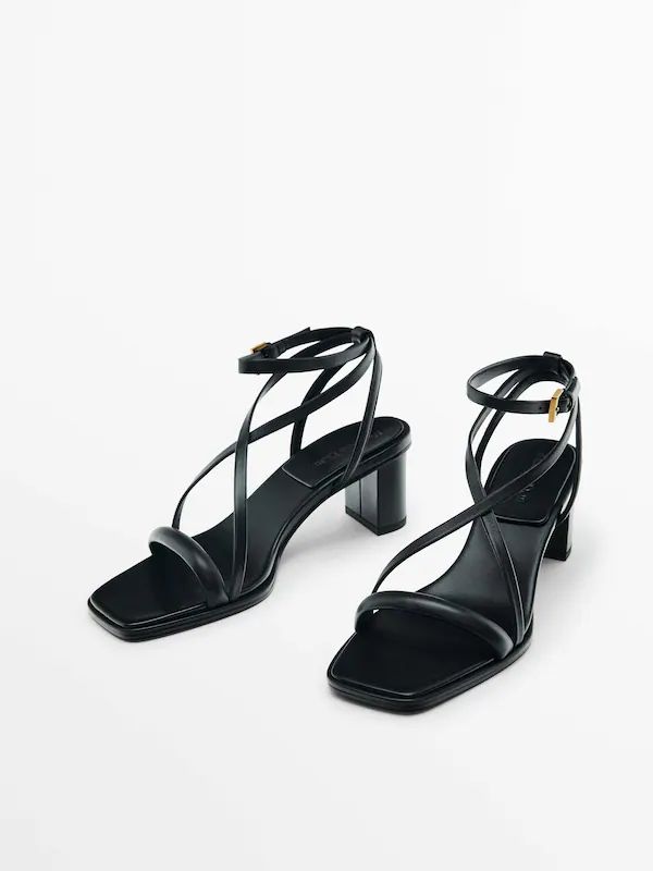 La versatilidad de esta prenda es excepcional, gracias a su diseño de tiras cruzadas y cierre ajustable con hebilla al tobillo. Con un tacón de 7 cm que ofrece la altura perfecta para cualquier ocasión, estas sandalias no solo complementan diversos atuendos, sino que también permiten una amplia variedad de combinaciones, desde un look casual hasta uno más formal. La inclusión de la plantilla AIRFIT, una plantilla técnica flexible de espuma diseñada para ofrecer un mayor confort, resalta el compromiso de Massimo Dutti con la calidad y la atención al detalle.