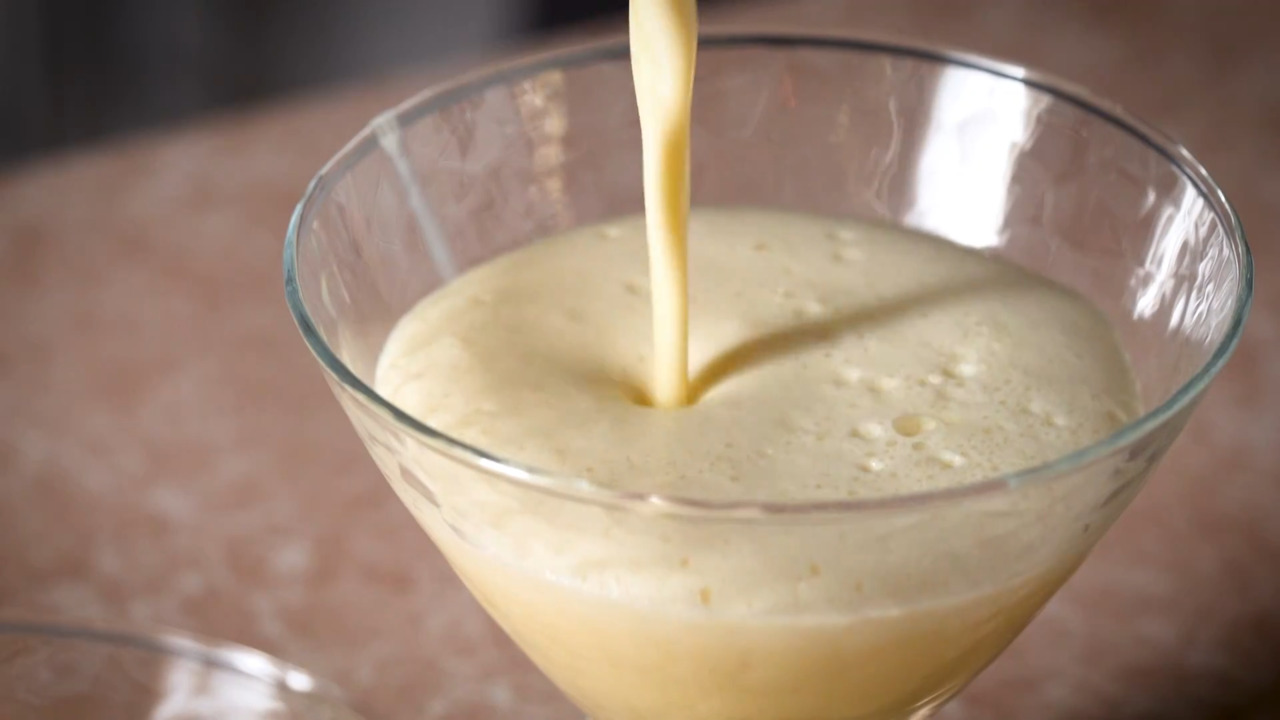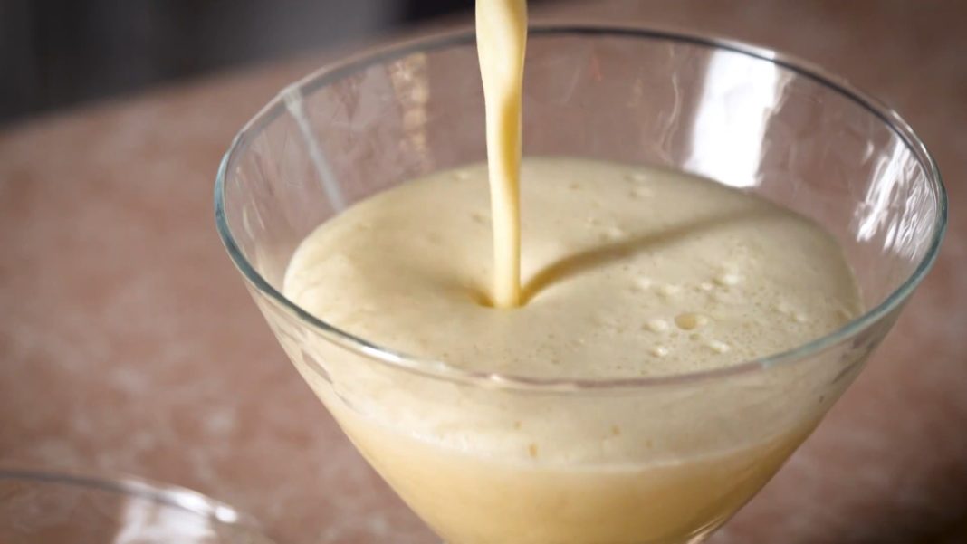 Cuando ya esté frío, añadimos el bourbon. También admite otro tipo de alcohol como whisky, ron o brandy, al gusto de cada casa. Después lo mezclamos bien, cubrimos el recipiente con un poco de papel film y llevamos a la nevera para que se enfríe y durante la menos seis horas. Transcurrido ese tiempo, tendrá una textura más cremosa y los sabores se habrán intensificado. Si queremos un ponche un poco más espero, se pueden montar las claras a punto de nieve y añadirlas al final, después del bourbon, con mucho cuidado para darle textura.