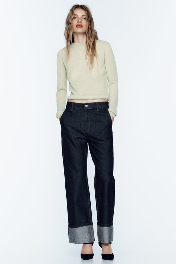 4Experimenta la elegancia casual con los Jeans Z1975 Rectos de Tiro Medio Bajo con Vuelta de Zara