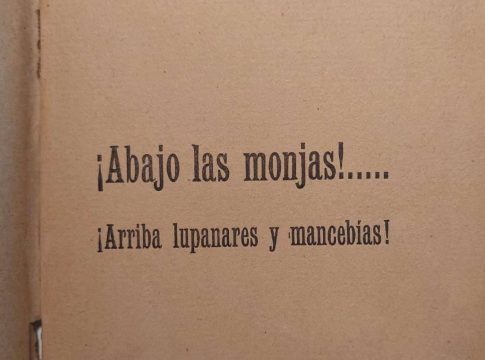 Otro libro fascinante que tienen disponible es ¡Abajo las monjas! … ¡Arriba los lupanares y mancebías!, escrito en 1910. El autor fue Higinio Ciria y Nasarre, quien era historiador y archivero en Madrid. Además, estuvo afiliado al Partido Católico, un partido político de ideología reaccionaria. Tras difundir sus ideas sufrió persecuciones por parte de la justicia.