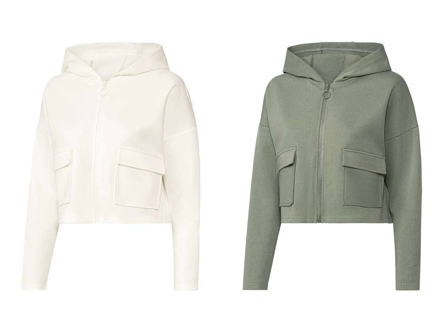 Actualiza tu estilo con nuestra sudadera de canalé para mujer, con un diseño moderno de talle corto y confeccionada con tejido suave de canalé. Disponible en tallas desde la S hasta la L, esta sudadera cuenta con capucha y bolsillos superpuestos para un toque funcional y estilizado. Puedes elegir entre los modelos en color crema o tono oliva, ambos resaltando la elegancia casual.