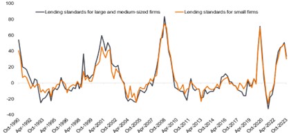 Source: Federal Reserve and Macrobond. Chart depicts data, as of 31 October 2023, for the Senior Loan Officer Opinion Survey on Bank Lending Practices.