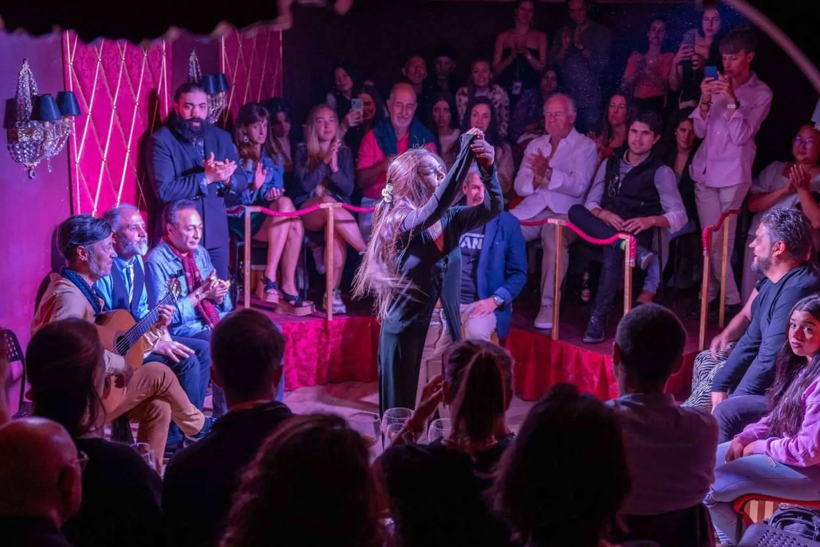 El tablao está diseñado para conectar a los artistas con su audiencia, separando las barreras que comúnmente alejan al espectador del espectáculo. Además, este espacio crea un ambiente íntimo que favorece el disfrute de la música y el zapateo flamenco sin la necesidad de amplificar el sonido, creando un ambiente natural envolvente y cautivador. Lejos de los grandes espectáculos, Essential Flamenco ofrece una experiencia cercana que intensifica las emociones y despierta el amor y la pasión por el verdadero arte flamenco.