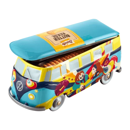En primer lugar, la conexión emocional es innegable. La caja, modelada con la forma característica de las legendarias furgonetas Volkswagen, transporta a los consumidores a una época nostálgica. Estas furgonetas, símbolos de libertad y rebeldía en los años 50, se han inmortalizado en esta caja metálica que emula sus detalles más emblemáticos: las ventanas, las ruedas y el inconfundible diseño del vehículo.