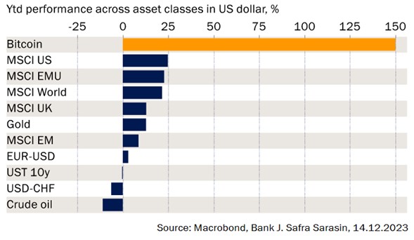 Bitcoin ha protagonizado una notable recuperación (Gráfico 1), lo que sitúa a las criptomonedas entre los activos de mayor rentabilidad de 2023 (Gráfico 2). La subida del Bitcoin se ha acentuado especialmente en los últimos meses y, por tanto, refleja una serie de acontecimientos recientes que merecen un análisis más detallado.