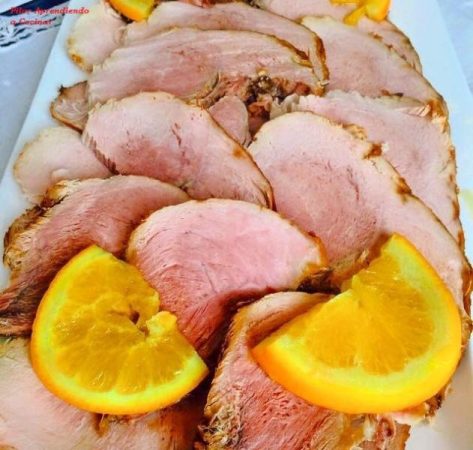 - Descanso y Servir: Una vez que esté cocido, retira el jamón del horno y déjalo reposar durante 15-20 minutos antes de cortarlo. Sirve las rebanadas con los jugos de la bandeja y decora con ramitas de romero y rodajas de naranja.
