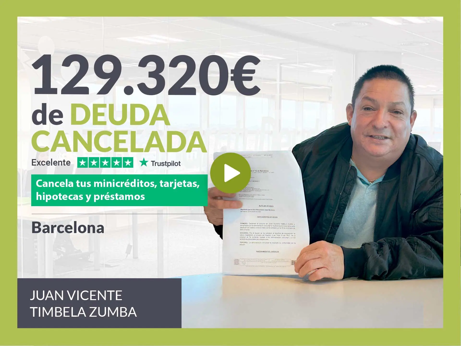 Repara tu Deuda Abogados, despacho de abogados líder en España en la tramitación de la Ley de Segunda Oportunidad, ha logrado otra cancelación de deuda en Barcelona (Cataluña). Mediante la gestión de Repara tu Deuda Abogados, el Juzgado de lo Mercantil nº12 de Barcelona (Cataluña) ha dictado el Beneficio de Exoneración del Pasivo Insatisfecho (BEPI) en el caso de Juan Vicente Timbela, que había acumulado una deuda de 129.320 euros a la que no podía hacer frente. VER SENTENCIA