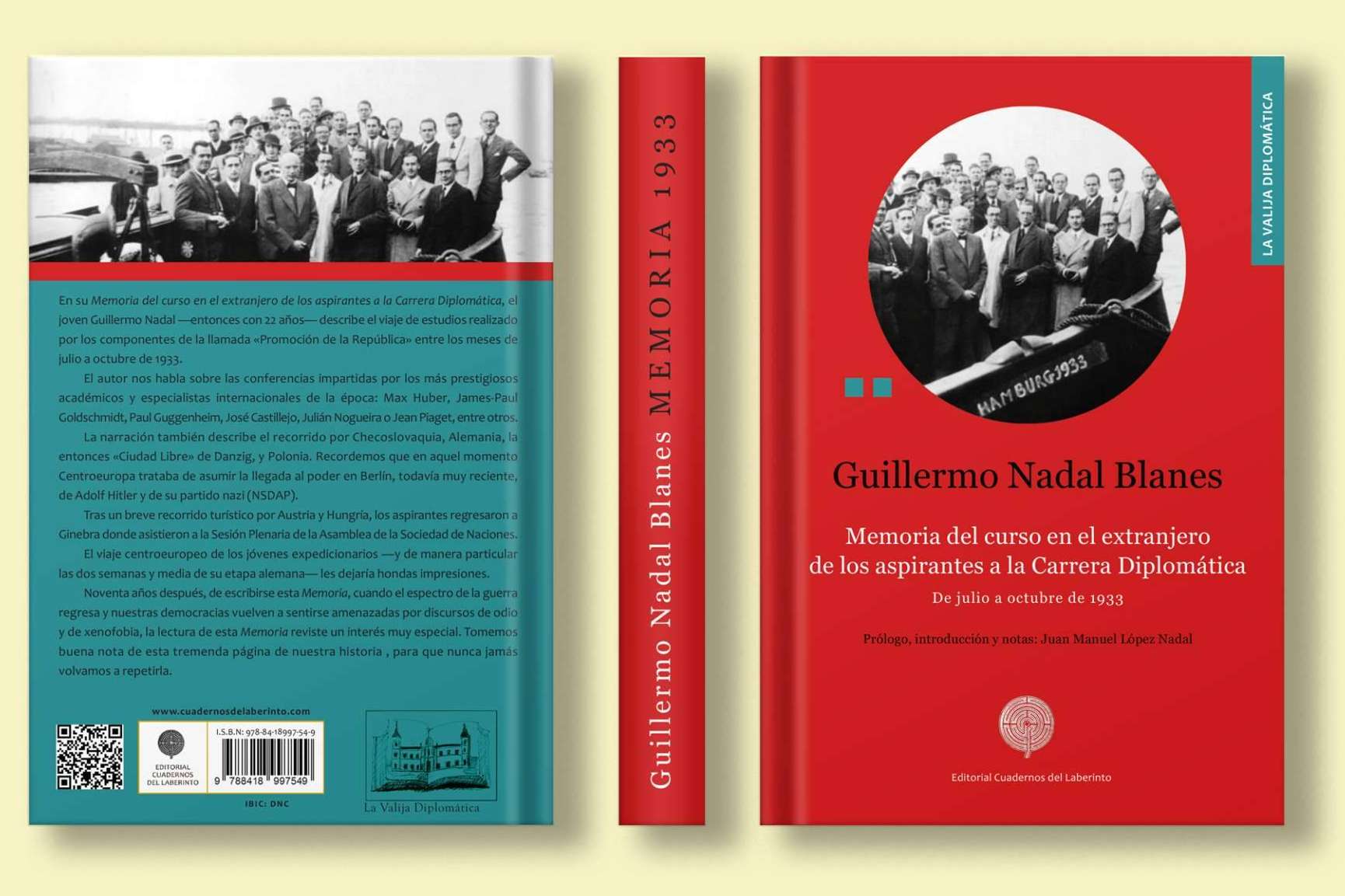 Acaba de llegar a las librerías de toda Españaa, el libro Memoria del curso en el extranjero de los aspirantes a la Carrera Diplomática, editado por Cuadernos de Laberinto en colaboración con la Asociación de Diplomáticos Españoles en su colección La Valija Diplomática. Estas memorias describen el viaje de estudios realizado por los componentes de la llamada «Promoción de la República» entre los meses de julio a octubre de 1933.