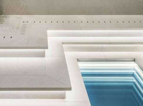 Los azulejos de porcelánico blanco no son simplemente una elección estética; son un componente esencial que define la modernidad en el diseño de piscinas. Su tonalidad neutra no solo ofrece una paleta versátil para resaltar el resplandor del agua, sino que también establece un lienzo perfecto para expresiones artísticas en el entorno acuático.