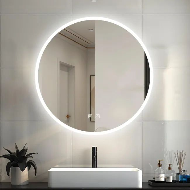 Con unas dimensiones de 70 x 70 cm, este espejo cuenta con luces LED de tres colores: blanco frío, amarillo neutro y amarillo cálido. La temperatura del color es ajustable entre 2700k, 4600k y 6500k, permitiéndote adaptar la iluminación según tus preferencias. La función antivaho en la parte central asegura que el espejo se mantenga siempre limpio y claro. Con dos botones táctiles, uno para controlar las luces LED y otro para la función antivaho, este espejo no solo es estilizado sino también altamente funcional.