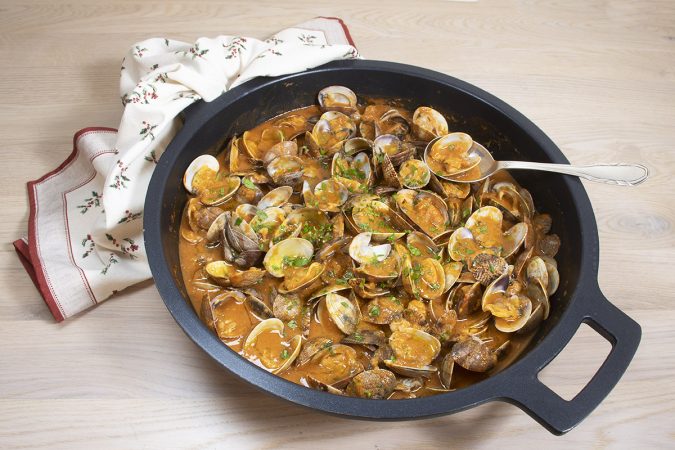 - Enrollar las almejas en finas lonchas de jamón serrano antes de cocinarlas.