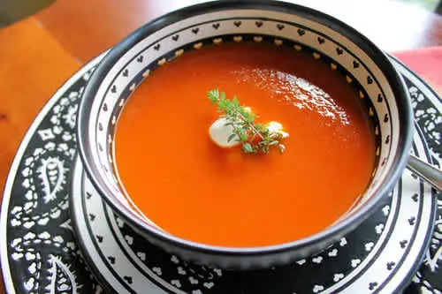 - Nata o crema agria: Un toque de nata o crema agria añade cremosidad a la crema de tomate. Puedes poner una cucharada en el centro antes de servir para un efecto visual y de sabor elegante.