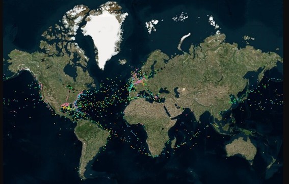 Fuente – LSEG, 4 de enero de 2024. Verde – Graneleros, Naranja/Amarillo – Petroleros, Azul – Contenedores, Rosa – Otros buques.