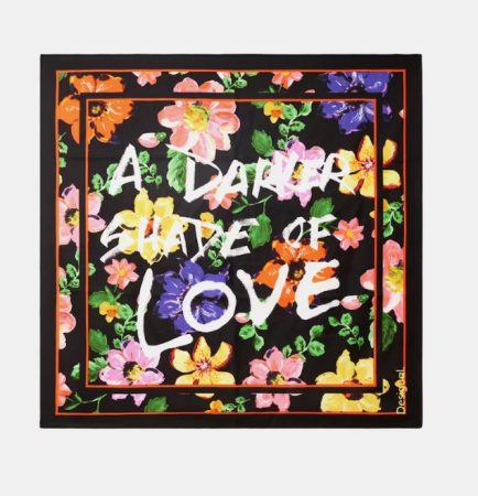 No hay nada más clásico y atemporal que el negro, pero ¿qué tal si le añadimos un toque floral? Esta bandana en tonos oscuros contrasta maravillosamente con un estampado de flores que evoca la vitalidad y frescura de la naturaleza.