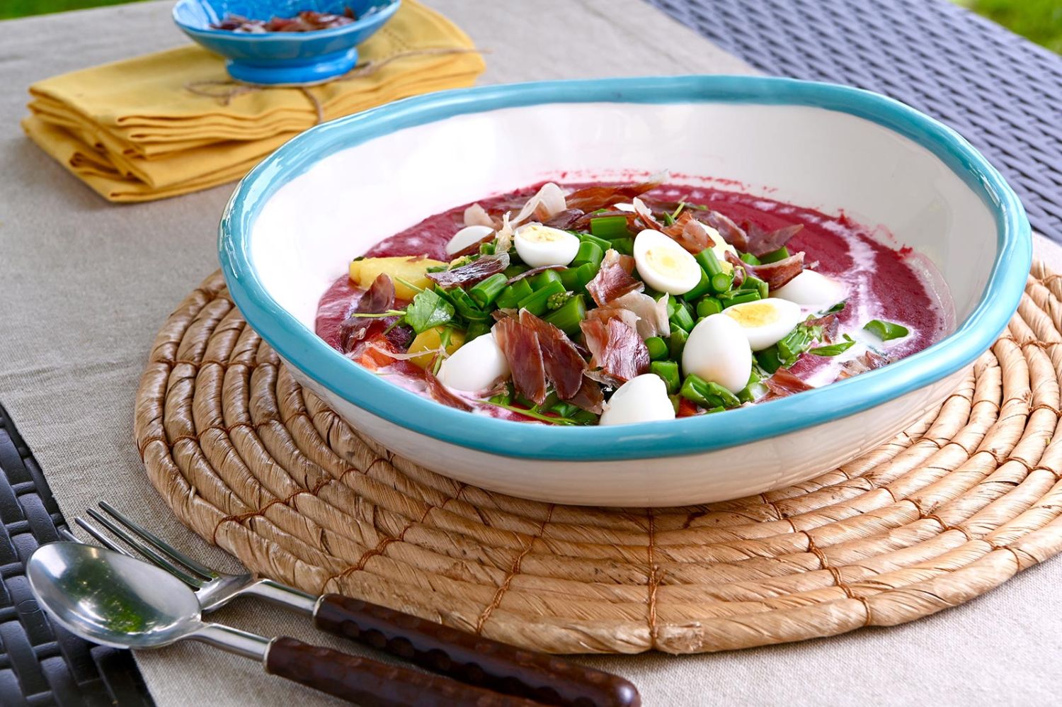 6SOPA DE REMOLACHA CON ENSALADA DE HUEVOS Y JAMÓN
