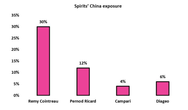 Según Bloomberg, en 2023 China importó hasta noviembre aguardientes de uva por valor de 1.600 millones de dólares, de los que el 99% procedían de Francia. La investigación china ejerce una presión adicional sobre un sector actualmente en dificultades dada la normalización en curso en EE.UU., la débil situación del consumo en Europa, la lenta recuperación en China y las importantes incertidumbres en Latinoamérica.