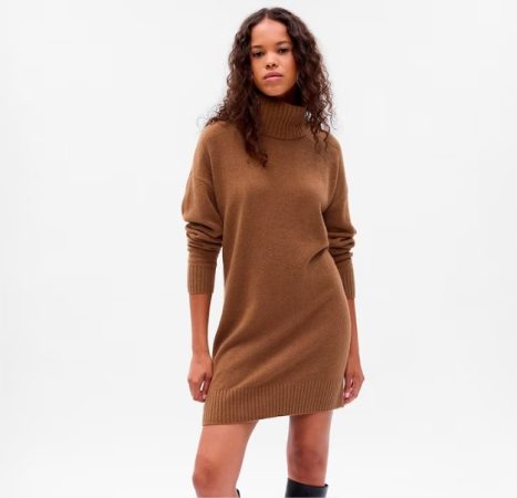 ¿Estás buscando algo elegante y cómodo para la temporada? El vestido de punto con cuello vuelto es la combinación perfecta de elegancia y comodidad. Este vestido en tono marrón es ideal para esas tardes frescas, aportando un toque chic y sofisticado a tu look.