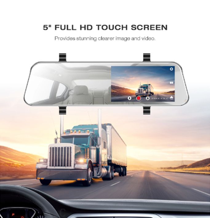 TOGUARD presenta su innovadora cámara de salpicadero con espejo de 5 pulgadas, una solución avanzada para mejorar la seguridad y la experiencia de conducción. Con una pantalla táctil ultrafina FHD 1080P, esta dashcam cuenta con una lente dual delantera y trasera, esta última resistente al agua, proporcionando una cobertura completa tanto en condiciones normales como en días lluviosos. La función de bloqueo de emergencia garantiza la protección de grabaciones cruciales en situaciones inesperadas, mientras que la pantalla táctil facilita la configuración y revisión de videos.