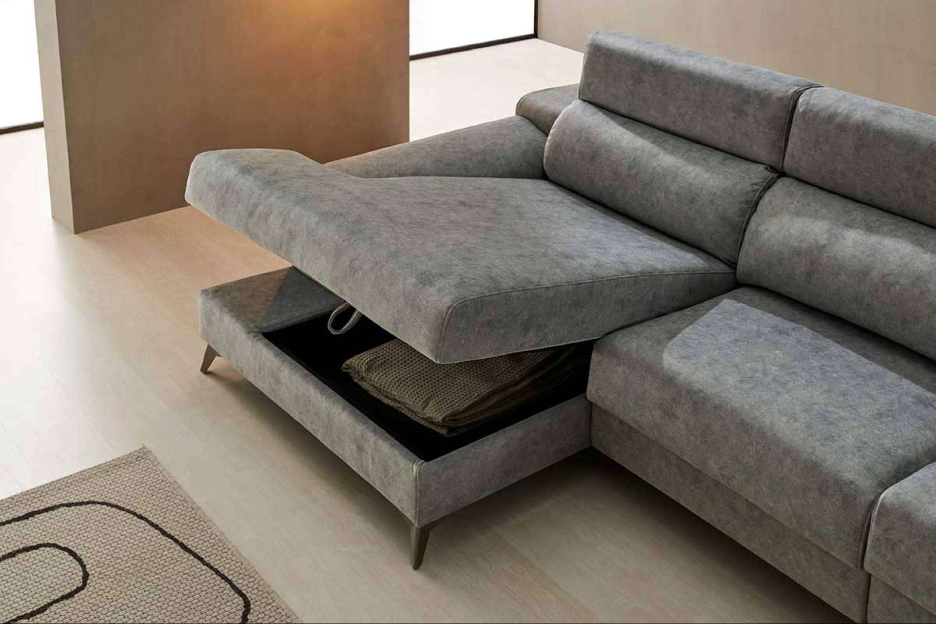 Los sofás chaiselongue con arcón cuentan con un espacio de almacenamiento oculto debajo del chaiselongue. Esto es una gran ventaja, ya que permite guardar mantas, cojines o cualquier otro objeto que no se use habitualmente. Son ideales para optimizar al máximo el espacio del salón.
