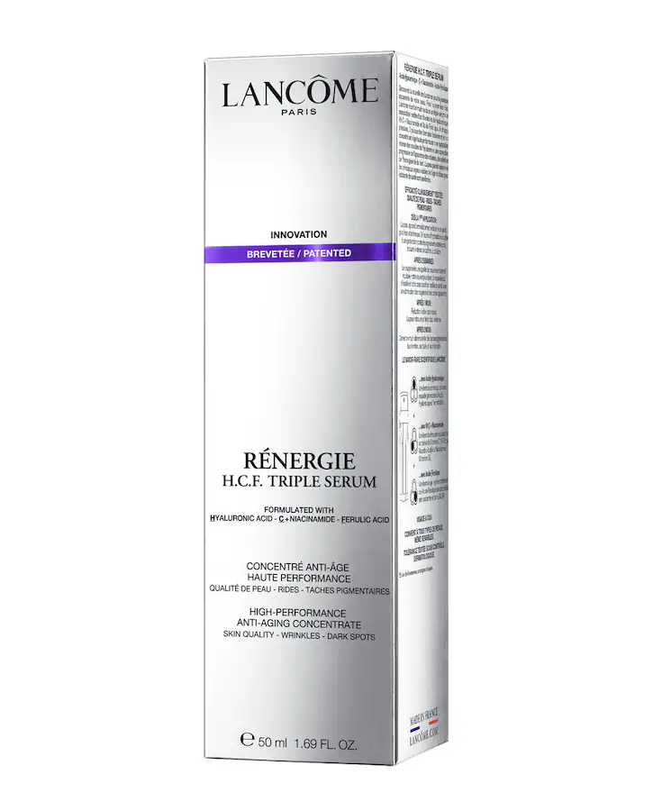 Llévate a casa el innovador Rénergie H.C.F Triple Serum Antiedad de Lancôme en formato de 50 ml. Este tratamiento anti-edad marca una nueva era de eficacia, combinando por primera vez 3 potentes dermoactivos: Ácido Hialurónico para hidratar y rellenar arrugas, derivado de la Vitamina C + Niacinamida para mejorar el tono, iluminar el rostro y atenuar manchas, y Ácido Ferúlico para fortalecer, proteger del foto-envejecimiento y mejorar la calidad de la piel. Con el descuento de El Corte Inglés, ahora puedes adquirirlo por 84 euros.