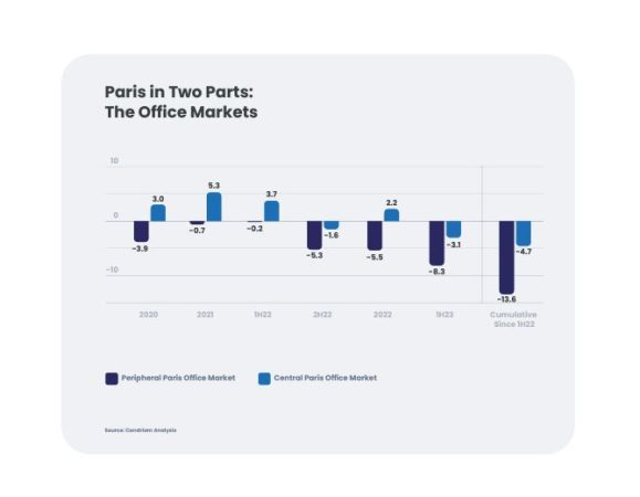 Según Savills, la rentabilidad de los alquileres en los principales distritos centrales de negocios europeos se situó en torno al 4,5% en el primer semestre de 2023, lo que supone un aumento de 86 puntos básicos con respecto al periodo del año anterior.