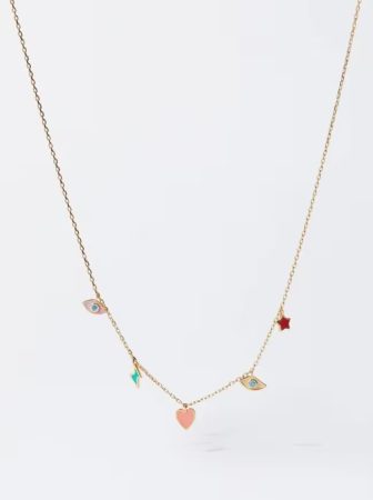 Como broche final a esta exquisita colección, Parfois presenta un collar con charms a juego con la pulsera mencionada anteriormente. Con un precio de 17,99 euros, este collar completa el conjunto, proporcionando una continuidad estilística que enamora a primera vista. Aunque la calidad y el diseño excepcionales podrían sugerir precios elevados, Parfois desafía esa expectativa al ofrecer joyas de alta calidad a precios accesibles. La marca ha comprendido la importancia de hacer que la elegancia sea asequible, permitiendo que todos, sin importar el presupuesto, se sumerjan en la belleza de sus creaciones.