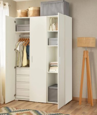 El armario con el que Leroy Merlin ha querido sorprendernos últimamente es una pieza única que nos ofrece un generoso espacio interior, perfectamente dividido en compartimentos que nos hacen mucho más fácil la tarea de la organización de nuestro armario. No más preocupaciones por el caos en tu vestidor; este armario está diseñado para adaptarse a tus necesidades de almacenamiento de manera eficiente.