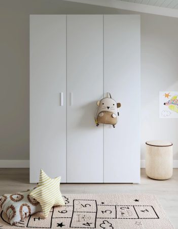El diseño minimalista de este armario lo convierte en un complemento ideal para cualquier tipo de dormitorio, sin importar la decoración previa. Las 3 puertas abatibles facilitan el acceso a tu ropa, mientras que el acabado blanco se convierte en un lienzo en blanco para tus preferencias decorativas. Fabricado en aglomerado recubierto de melamina de alta calidad, este armario no solo es estéticamente agradable, sino también fácil de limpiar y resistente al desgaste. Sus características lo recomiendan especialmente para dormitorios y habitaciones secundarias, donde la durabilidad y el estilo son igualmente importantes.