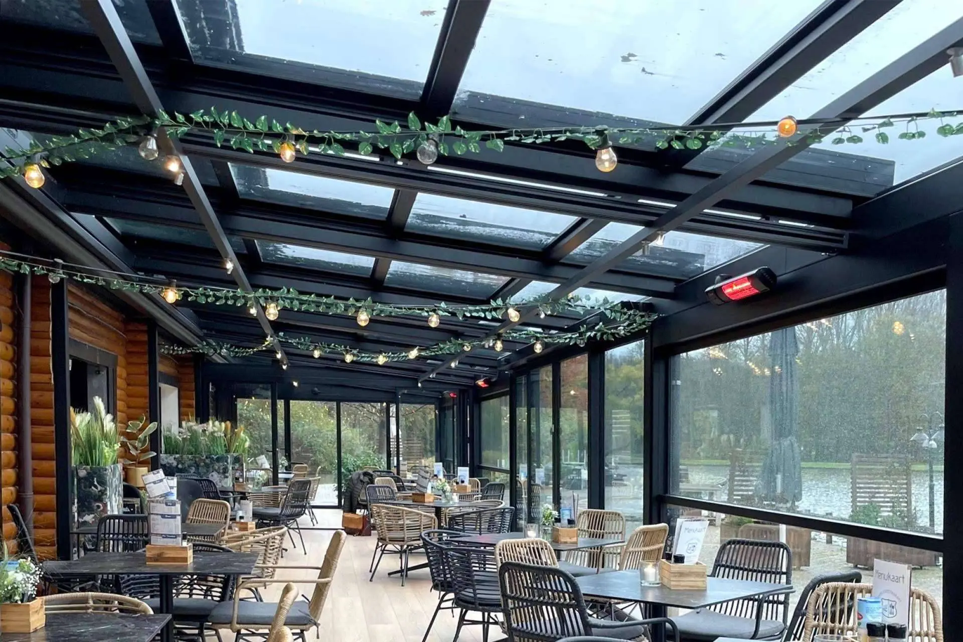 Asimismo, el equipo de Airclos instala sistemas de techos móviles con hojas rectangulares de cristal que se pueden expandir hasta 4 metros de ancho. Para superficies de mayor tamaño, ofrecen un techo corredizo de una o dos aguas. Con su longitud de sistema ilimitada, se pueden crear soluciones con las dimensiones que sean necesarias para un proyecto.