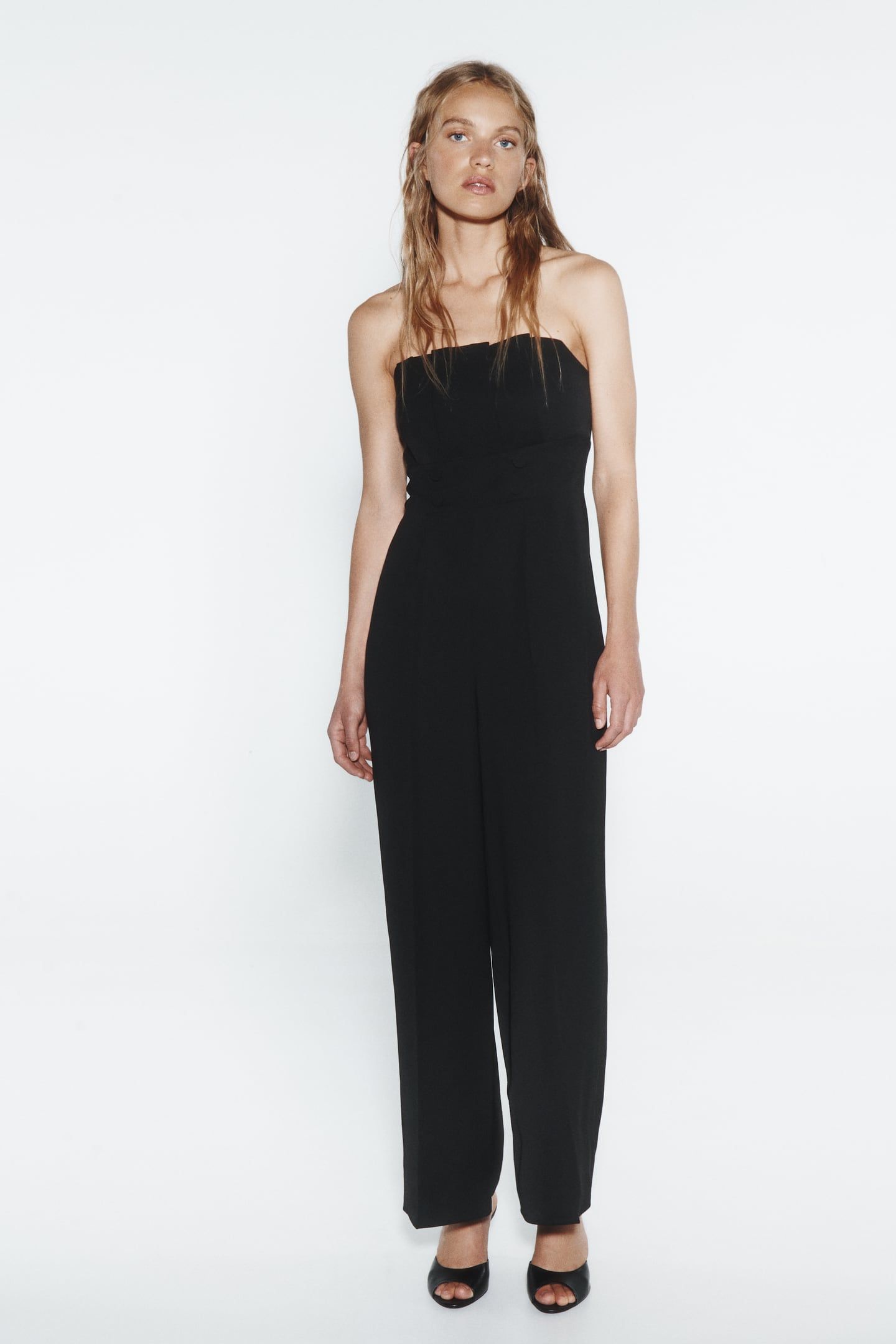 Zara nos presenta el mono largo palabra de honor, una pieza elegante y versátil que ahora está disponible a un precio irresistible. Con un descuento del 60%, este exquisito mono puede ser tuyo por tan solo 17,99 EUR. Destacando por su escote recto y hombros descubiertos, este mono añade un toque de sofisticación a cualquier ocasión. Los detalles de tablas y botones forrados en la parte delantera le dan un aire chic y moderno, mientras que el cierre lateral con cremallera oculta en costura asegura un ajuste perfecto.