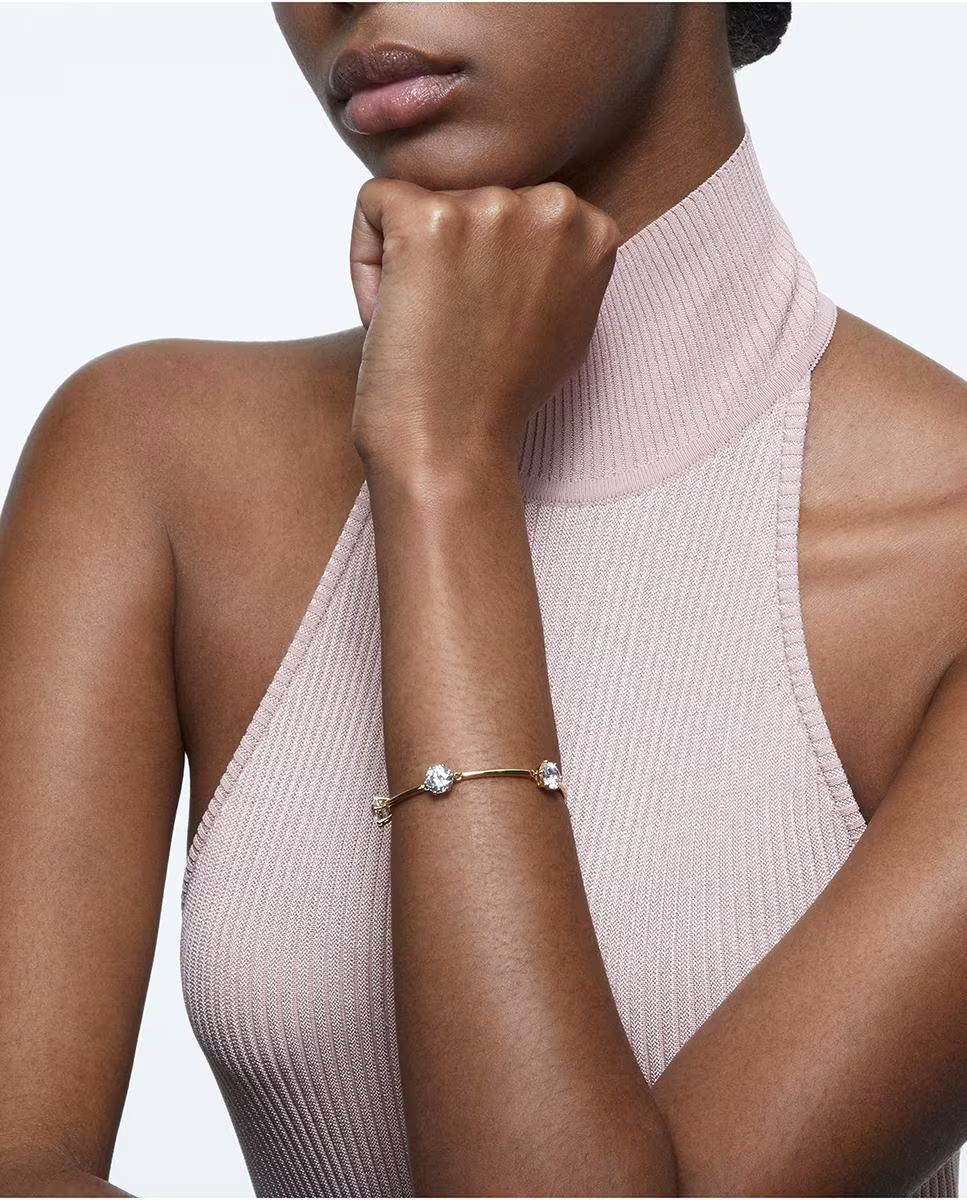 Sumérgete en la elegancia celestial con la pulsera Constella con pedrería, una obra maestra inspirada en el misterio del cosmos. Esta exquisita pieza, diseñada por la directora creativa Giovanna Engelbert para la Collection I, cautiva con su diseño perfectamente articulado que sigue el movimiento del cuerpo. Una hilera de piedras de talla redonda y brillante se engasta en una banda con baño dorado, uniendo finos eslabones para crear una pulsera que deslumbra con su delicadeza y sofisticación.