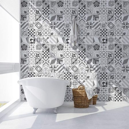 La selección de azulejos adhesivos en tonos grises, representada por el conjunto Arduro, aporta un toque de elegancia a la decoración del baño. Con 60 vinilos baldosas azulejos, este conjunto permite renovar el espacio de manera fácil y sin complicaciones. La imitación de azulejos de cemento añade un estilo clásico y atemporal. Además, la combinación de tonos grises ofrece una paleta neutral que se adapta a diversos estilos decorativos.