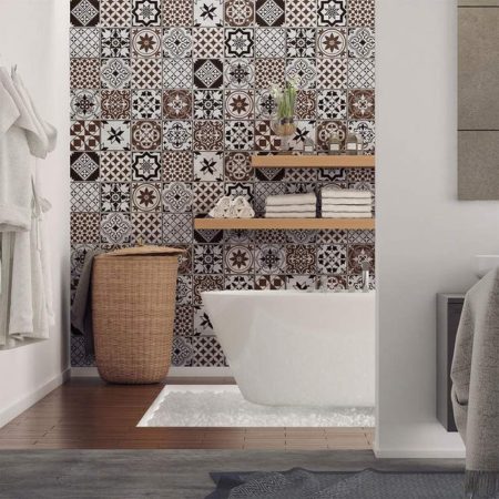 Y el conjunto Vicenzu destaca por sus azulejos adhesivos en tonos marrón y amarillo, ofreciendo un toque vibrante y único a la decoración del baño. La facilidad con la que estos azulejos pueden transformar la decoración del baño es impresionante. Su diseño de baldosas de cemento aporta un estilo fresco y renovado, proporcionando una opción efectiva para aquellos que buscan un cambio sin complicaciones.