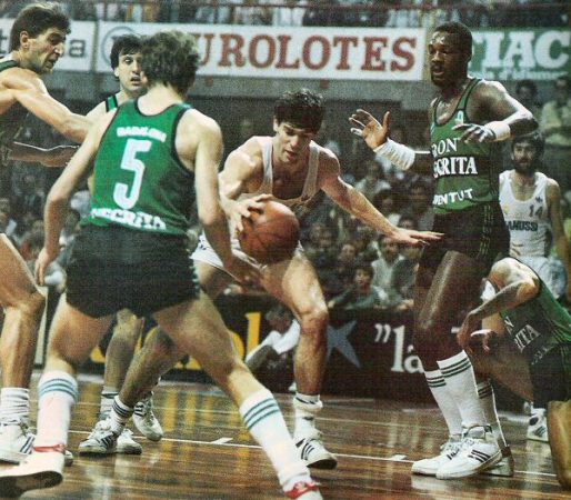 En las competiciones domésticas el Real Madrid tenía el patrocinio de Zanussi y en la competición europea fue Iberia, la entonces línea aérea de bandera de España quien lucía en la elástica merengue. Lo hizo dos temporadas: 1984-85 Y 1985-86. La compañía estuvo presente en partidos inolvidables para los aficionados al baloncesto, sobre todo para los merengues. Fueron partidazos disputados en el vetusto pabellón de la Ciudad Deportiva del Real Madrid. Ahora, en esa misma zona, lucen espléndidas las ‘Cuatro Torres‘. En el caso de Iberia, la compañía estuvo presente en los encuentros de la antigua Copa de Europa.