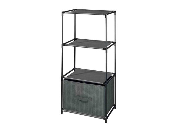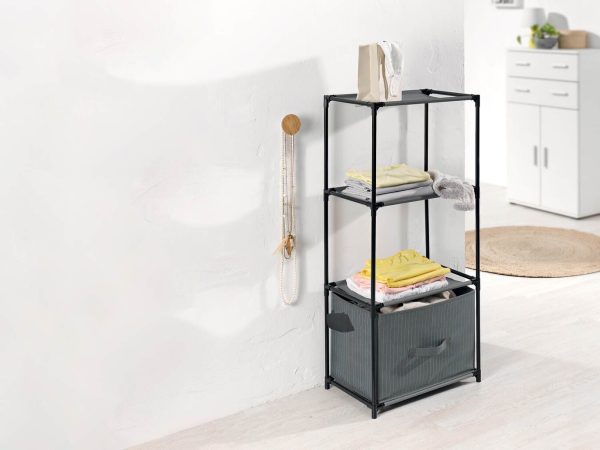 El atractivo diseño de tubos de acero y un cajón revestido de tejido textil no solo ofrece funcionalidad, sino que también añade un toque moderno y elegante. Esta estantería no es solo una solución de almacenaje, sino una pieza decorativa que se integra sin esfuerzo en cualquier ambiente. ¿Temes que no haya espacio suficiente en tu armario? No hay problema. Esta joya se puede guardar fácilmente dentro de un armario o, si lo prefieres, usarla para aprovechar ese espacio adicional en el cuarto de baño.
